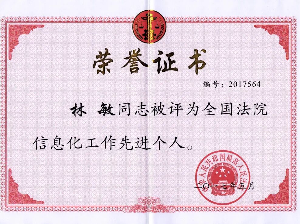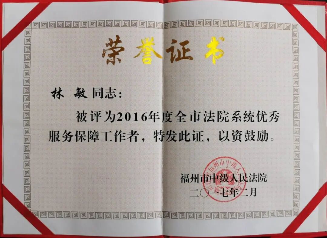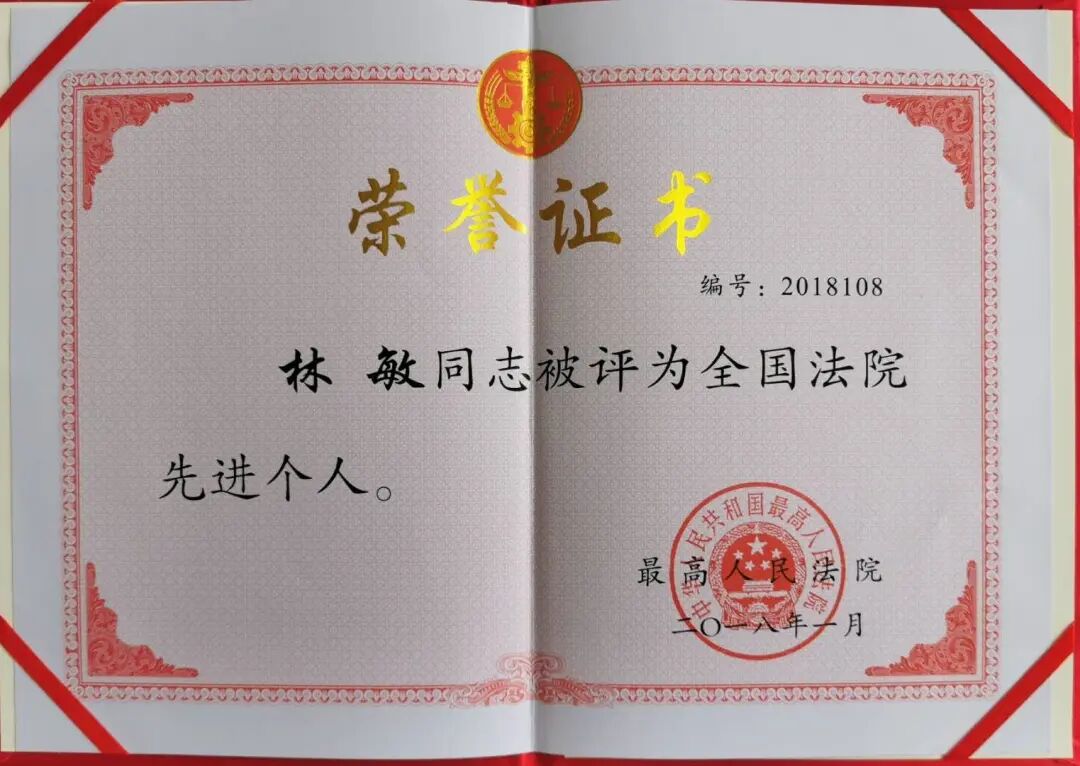 闽侯县人民法院党组成员、审管办主任林敏 2009年7月毕业于福州大学法学专业,2009年8月参加福建省委组织部选聘生工作,任闽侯县竹岐乡榕东村党总支书记助理,2011年8月到闽侯法院工作至今,先后任上街法庭书记员、助理审判员、审管办副主任、办公室主任、综合办主任,现任闽侯法院党组成员、审管办主任、综合办支部书记。曾先后获评“闽侯县优秀共青团干部”“2016年度全市法院系统优秀服务保障工作者”“全国法院信息化工作先进个人”“全国法院先进个人”“福建青年五四奖章”等荣誉称号。 他是始终不忘初心的“奋斗者” 争当学懂弄通做实习近平新时代中国特色社会主义思想的排头兵、贯彻落实习近平法治思想的践行者,坚持学史明理、学史增信、学史崇德、学史力行,从党史中汲取前进的智慧和力量,从英雄人物和时代楷模身上学习共产党员的精神与品质。坚持学党史、悟思想、办实事、开新局,按照“五个过硬”要求,加强司法能力实践锻炼,提高履职尽责能力,严守党风廉政有关规定,不忘初心、牢记使命,以新时代奋斗者的姿态投入到法院各项工作中,以优异成绩迎接中国共产党建党100周年。 他是坚持公正司法的“践行者” 在上街法庭工作期间,他认真做好执法办案、诉讼服务、法治宣传等各项工作,年均接待当事人1500余人次,登记立案600余件,参与审理案件1100多件,办案期间零投诉。 在审判管理部门,他做好文书上网、庭审直播等司法公开工作,推动建立审执质效常态化分析研判机制。到综合办工作后,着力提升司法政务事务能力和水平,扎实做好办文办会、信息宣传、机要档案、沟通联络等办公室各项工作,不断提高“三服务”水平,2019年法院司法宣传工作受到最高人民法院通报表扬。 他是强化创新引领的“先行者” 积极推进福建首家“智慧法院”试点项目建设,他和项目组成员一起推出全国法院系统首台ITC终端,在全省9地市52家中基层法院推广。在全省率先上线“闽侯微法院”,有序推进智慧庭审、电子卷宗随案生成及智能审执辅助系统建设。2020年法院受理各类案件13933件,比增4.04%,结案13129件,比增6.19%,员额法官人均结案320.2件,速裁团队平均审理时间缩短26天。 他是新冠疫情防控的“冲锋者” 2020年,面对新冠肺炎疫情,他提前返岗,根据院党组工作部署,统筹协调防疫期间机关各项工作,做细做实各项防疫措施,和部门同事一起多方筹措调配防护物资,就重点人群、重点场所、重点环节提前开展预防应对,做好后勤保障的“大管家”。 同时,他还带队一线攻坚工作,与队员一起转“战”上街、祥谦等地,在高速路口设卡排查车辆、检测登记,到企业园区走访排查、劝导宣传,助力企业复工复产。通过“闽侯法院”官方微信等平台推送防疫有关文章100余篇,及时发布工作通告,解读法律政策,普及防疫知识,总阅读量超过9万人次,获得多方点赞。 初心守正义公正耀法徽 参加工作十余年,林敏俨然已从青涩的少年蜕变为独当一面的有为青年,站在“两个一百年”奋斗目标的历史交汇点,作为法院人,他将永葆赤子之心,坚守司法为民,以更加昂扬的精神状态和奋斗姿态,建功新时代、奋进新征程。