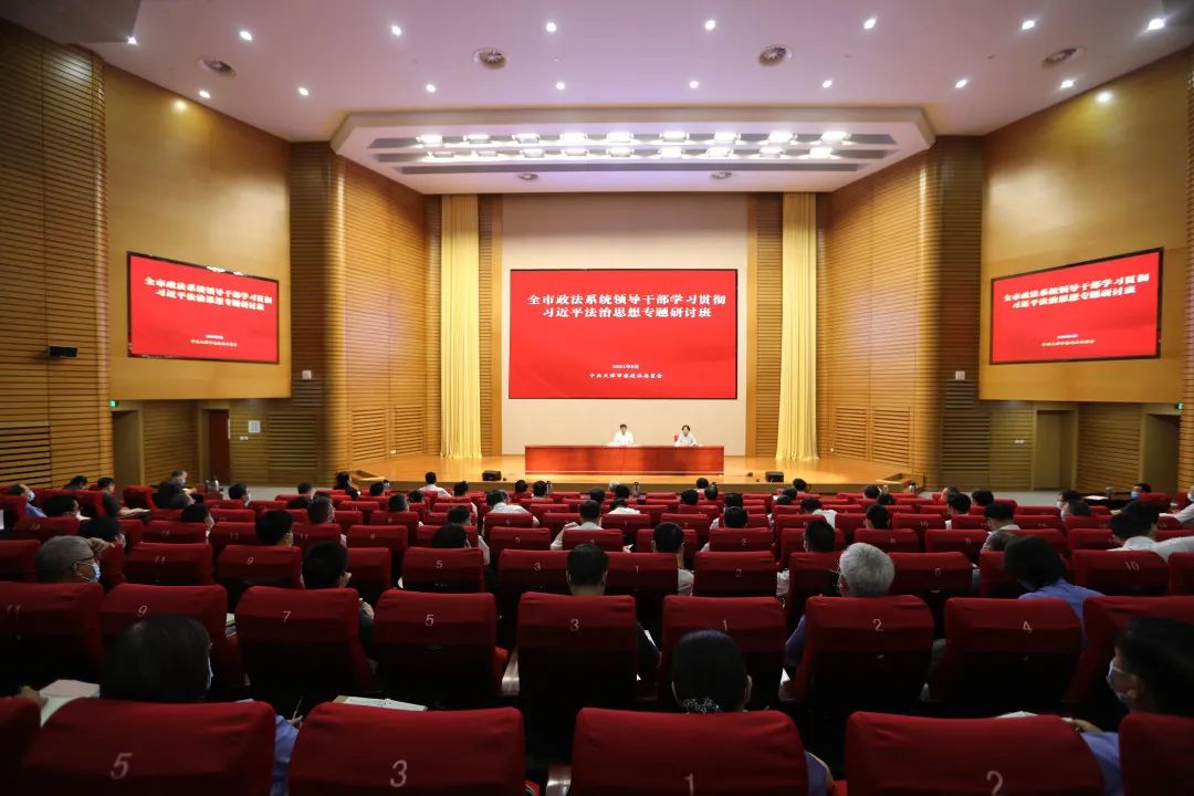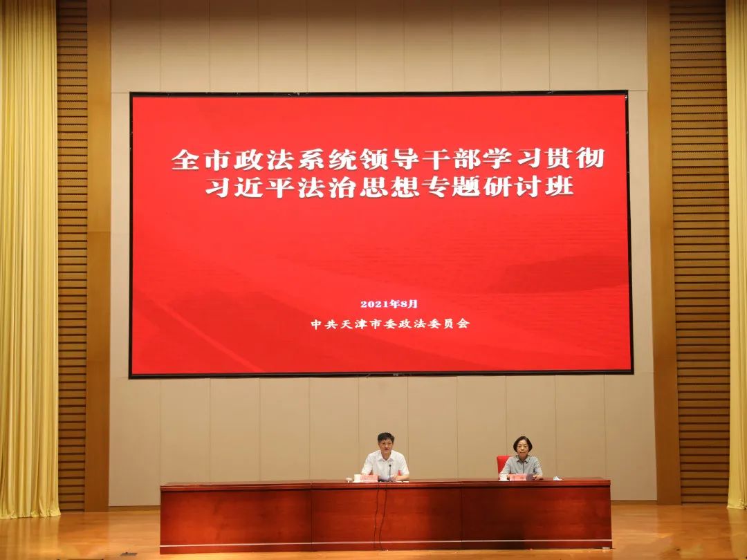 8月26日上午,全市政法系统领导干部学习贯彻习近平法治思想专题研讨班在天津市委党校开班,深入学习贯彻习近平法治思想和习近平总书记“七一”重要讲话精神,学习贯彻省部级、厅局级政法干部学习贯彻习近平法治思想研讨班精神,推动学习贯彻习近平法治思想不断取得新成效。市委常委、市委政法委书记赵飞出席开班式并作辅导报告,市高级人民法院院长李静主持,市人民检察院检察长宫鸣出席,市政法各单位局级领导干部和各区级政法单位主要负责同志220余人参加。 专题研讨班开班式指出,习近平法治思想是马克思主义法治理论中国化的最新成果,是习近平新时代中国特色社会主义思想的重要组成部分,是引领法治中国建设在新时代实现更大发展的思想旗帜。要坚持以习近平新时代中国特色社会主义思想为指导,把学习贯彻习近平法治思想同学习贯彻习近平总书记“七一”重要讲话精神结合起来,弘扬伟大建党精神,增强“四个意识”、坚定“四个自信”、做到“两个维护”,提升政治判断力、政治领悟力、政治执行力,切实做到全面系统学、联系实际学,领悟丰富内涵、吃透基本精神、明确工作要求,更好地用于指导实践、推动工作,全力在新时代政法工作新征程谱写新篇章、夺取新胜利。 赵飞在作辅导报告时强调,要学深悟透习近平法治思想的发展脉络、重大意义和核心要义,切实增强贯彻落实的思想自觉、政治自觉、行动自觉。要掌握运用好习近平法治思想蕴含的立场观点方法,准确把握党和法的关系、政治和法治的关系、“文本法”和“内心法”的关系、现代化和法治化的关系、改革和法治的关系、依法治党和依法治国的关系,廓清思想迷雾、破除认识误区,始终确保政法工作坚持正确方向、正确道路。要牢牢抓住政法队伍教育整顿的重大政治机遇、历史机遇、时代机遇,铸牢政治忠诚之魂、练就本领高强之能、严明铁规禁令之纪、磨砺敢于亮剑之勇,当好习近平法治思想的坚定信仰者、忠实实践者、自觉遵守者、坚决捍卫者,始终保持“赶考”的清醒和坚定,以一往无前的奋斗姿态、大无畏的英雄气概,推进天津政法工作高质量发展,开创天津政法工作新局面,取得天津政法工作新成效。