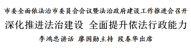 李鸿忠强调,各级领导干部要发挥“关键少数”作用,带头遵从法治、敬畏法治、了解法治、掌握法治,做尊法、学法、守法、用法的模范。要深入落实市级机关处长大会精神,狠抓法治建设的“中间层”,不断提升各级党员干部的法治素养,提高依法办事能力。要加强法治工作队伍建设,以党的政治建设为统领,打造一支革命化、正规化、专业化、职业化的津门法治铁军。要扎实做好法治政府建设督察工作,加强对全市各区、各部门督促指导、检查抽查,认真查找短板漏洞,全力抓好整改落实,全面提升法治政府建设水平。