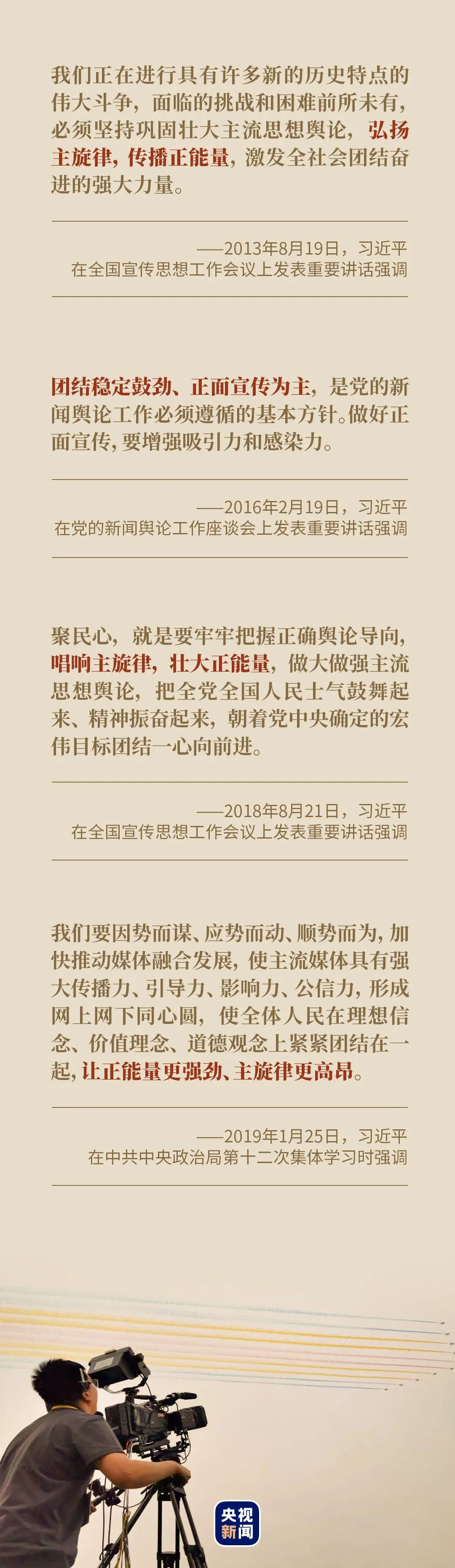 在新的时代条件下,要承担起党的新闻舆论工作的职责和使命,坚持正确的政治方向是第一位的。党性原则是党的新闻舆论工作的根本原则。2013年8月19日,在全国宣传思想工作会议上,习近平总书记深刻论述了党性和人民性的关系——2016年2月19日,习近平总书记在党的新闻舆论工作座谈会上,进一步阐述:“我们党以全心全意为人民服务为根本宗旨,没有自己的特殊利益,体现党的意志就是体现人民的意志,宣传党的主张就是宣传人民的主张,坚持党性就是坚持人民性。”今年以来,围绕庆祝中国共产党成立100周年这一重大主题,一批批党史权威出版物、一篇篇生动鲜活的新闻报道、一部部刷屏影视剧作品,生动展现我们党带领人民实现中华民族伟大复兴的光辉历程和伟大实践,热情讴歌我们党始终全心全意为人民服务的初心使命,成为广大干部群众开展党史学习教育的生动教材。“坚持团结稳定鼓劲、正面宣传为主。”2013年全国宣传思想工作会议上,习近平总书记提出了宣传思想工作必须遵循的重要方针。“弘扬主旋律,传播正能量,激发全社会团结奋进的强大力量”“做好正面宣传,要增强吸引力和感染力”“唱响主旋律,壮大正能量,做大做强主流思想舆论”……总书记多次强调正能量与主旋律的重要作用。7月1日,庆祝中国共产党成立100周年大会上,习近平总书记铿锵有力的重要讲话即时传遍千家万户。北京天安门广场上,中国人民解放军空中梯队飞行表演、全场高歌昂扬奋进的经典歌曲……这一幕幕高光时刻,通过文字、图片、视频传遍神州大地,亿万中华儿女无不为之热泪盈眶、心潮澎湃。这当中凝聚着广大新闻工作者的辛勤汗水。从庆祝新中国成立70周年,到庆祝中国共产党成立100周年;从展现经济建设辉煌成就,到紧跟对外开放新发展;从聚焦脱贫攻坚,到报道共同战“疫”……宣传思想战线奋力凝聚起全社会团结奋进的强大力量。当今中国日益走近世界舞台中央,增强国际话语权、提升国家文化软实力,成为中国必须做好的一门功课。“讲好中国故事,传播好中国声音”,习近平总书记念兹在兹。从中美经贸摩擦中密集播发重磅评论,到揭批“港独”分子和激进暴力头目卖港祸港真面目,再到发布涉疆问题白皮书、播出新疆反恐纪录片……充分的事实依据、丰富的表现形式、精准的传播路径,有理有利有节开展舆论斗争。“努力塑造可信、可爱、可敬的中国形象。”今年5月31日,中共中央政治局就加强我国国际传播能力建设进行第三十次集体学习。习近平再次强调“讲好中国故事,传播好中国声音”,指出——“要深刻认识新形势下加强和改进国际传播工作的重要性和必要性,下大气力加强国际传播能力建设,形成同我国综合国力和国际地位相匹配的国际话语权,为我国改革发展稳定营造有利外部舆论环境,为推动构建人类命运共同体作出积极贡献。”加强和改进国际传播工作,是全面建成小康社会后宣传思想战线的重大使命。走上新征程,宣传思想战线必将展现新作为。