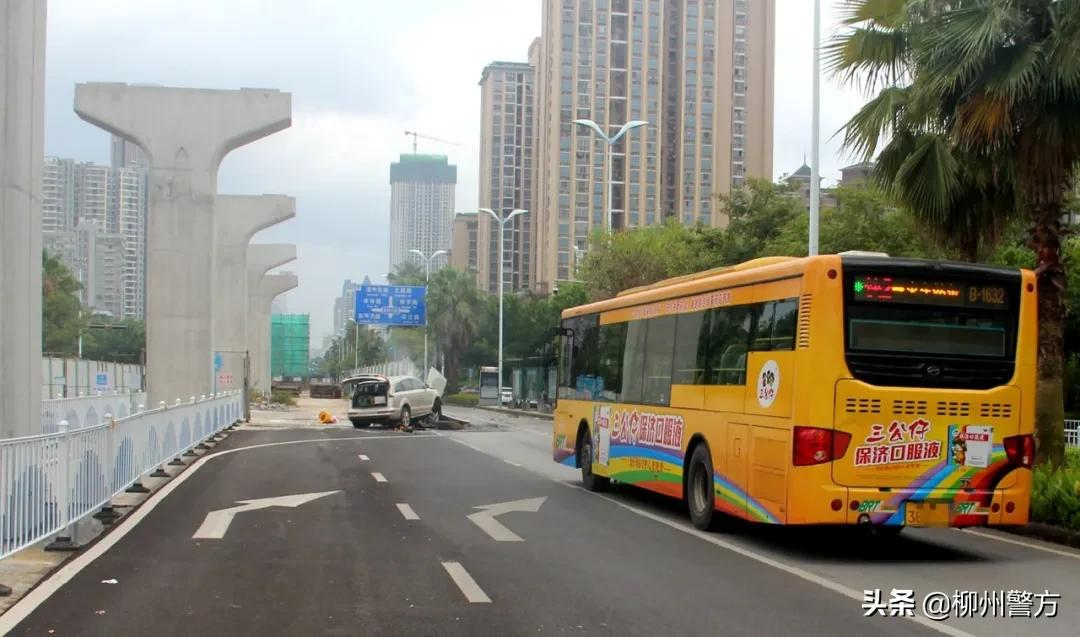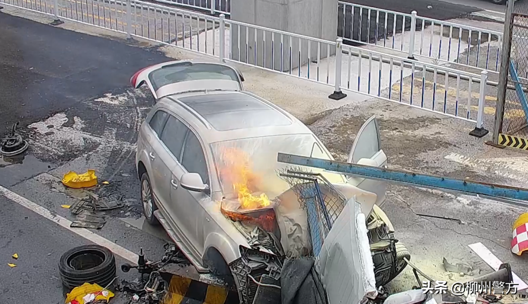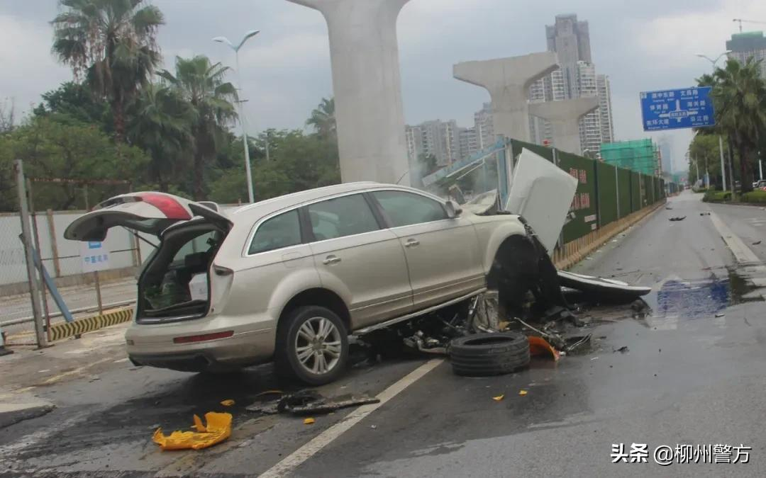 2021年8月15日下午,柳州市公安局交警支队城中大队接到报警,在桂中大道清华坊幼儿园门前路段,一辆奥迪越野车在撞上施工路段隔离墩后自燃,车辆严重损坏,所幸无人员受伤。