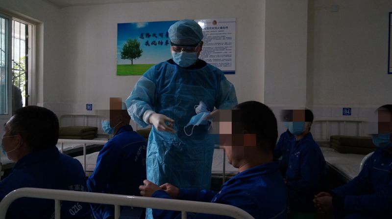 强戒所对新入所人员,设立封闭隔离区,作为医生,每天只有宋斌一人穿上隔离服进入隔离区测体温、进行消毒和对患病戒员的诊治。