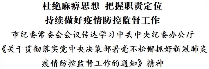 会议指出,要提高政治站位,深入学习贯彻习近平总书记重要指示精神和党中央决策部署,督促各级党组织切实把思想和行动统一到党中央关于疫情防控形势的判断和工作部署上来,强化防控意识、责任意识,推动各项防控措施落实有效,警钟长鸣、防范在前,坚决杜绝麻痹思想。突出重点,坚持问题导向、靶向监督,盯紧机场口岸、海港边境、车站医院等重点场所关口,督促主管部门压实防控责任,加强统筹衔接,确保各项防控措施严格执行到位。