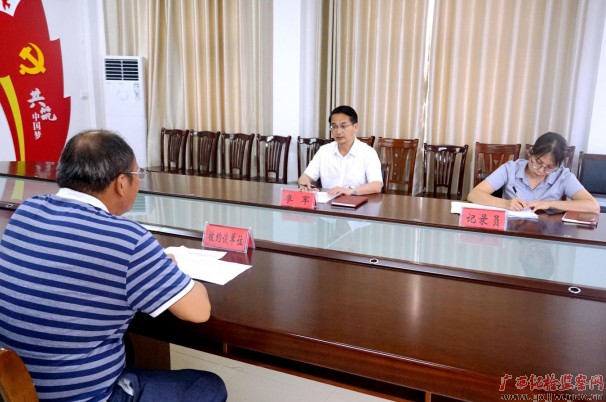 图为马山县县委常委、纪委书记、监委代主任廖军约谈县人社局主要负责人