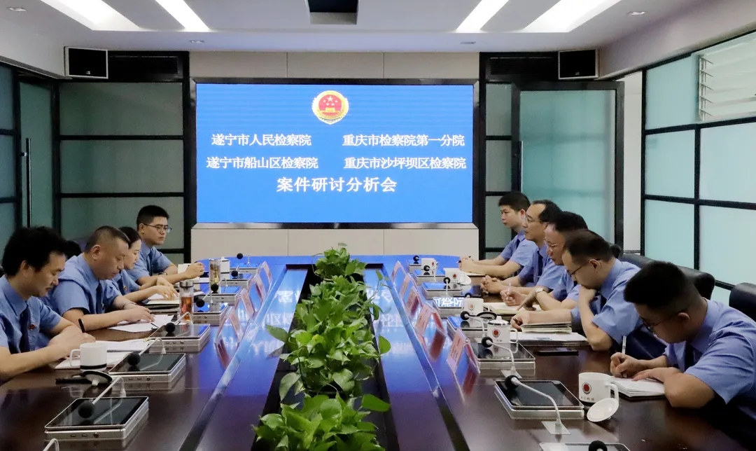 遂宁市检察院、遂宁市船山区检察院与重庆市一分院、重庆市沙坪坝区检察院共同研究案情。