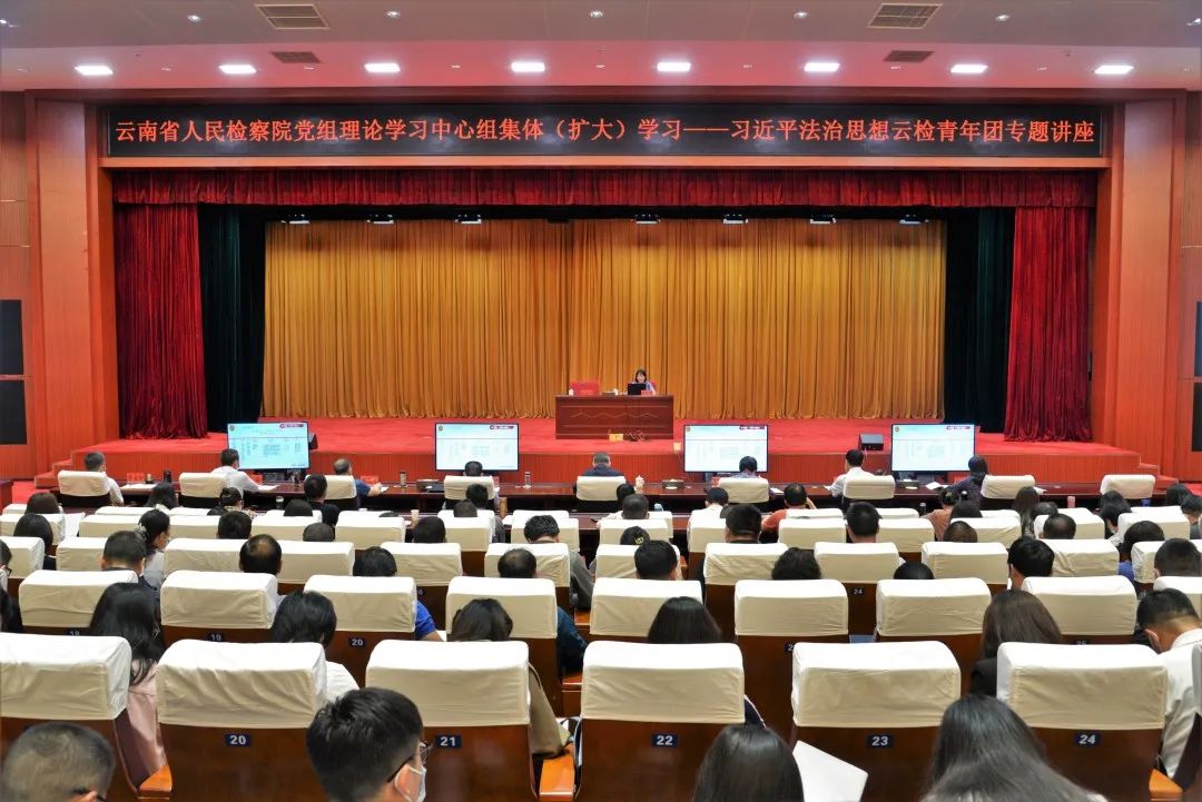 8月27日上午,云南省检察院党组理论学习中心组开展集体(扩大)学习,围绕“坚持统筹推进国内法治与涉外法治”,省检察院党组领导班子成员、机关和昆明铁检分院全体检察人员参加学习。