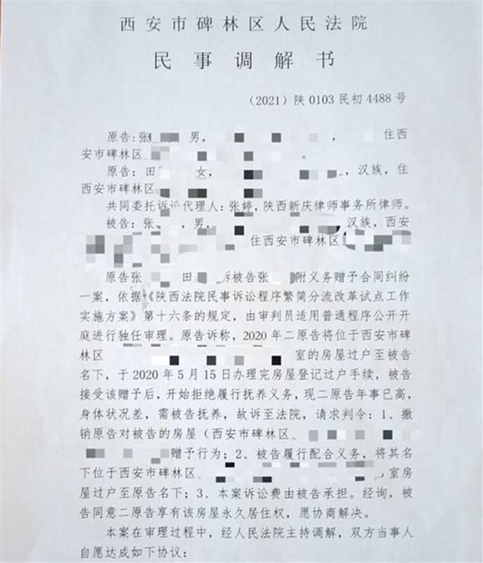张大爷和老伴今年都已经是86岁的高龄了,膝下共有一儿一女,女儿在外地,不具备照顾老人的条件。因为张大爷和老伴年事已高,生活起居不便,而且张大爷的老伴常年有病,经常住院,为了能够得到更好的照顾,张大爷和老伴提前将名下的房屋赠予给了大儿子,希望大儿子能够更好地照顾自己并为自己养老送终。结果,2020年5月大儿子在接受了房屋赠予过户后,立马判若两人,不仅拒绝履行抚养义务,还对两位老人恶语相向,态度十分恶劣,并声称要将房子卖掉,以此将两位老人赶出家门,这让年事已高的张大爷和老伴又惊又气,直接住进了医院。张大爷和老伴已是耄耋之年,本该到了安心养老的年纪,结果到最后却要面临无人照顾、老无所居的悲惨局面。走投无路的张大爷拖着病体拿着身份证几经辗转来到了碑林区法律援助中心寻求法律帮助。