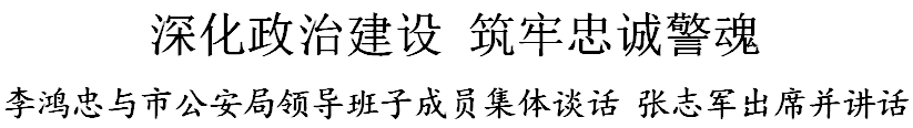 15日,市委书记、市政法队伍教育整顿领导小组组长李鸿忠到市公安局与班子成员进行集体谈话,深入学习习近平总书记关于政法队伍建设的重要论述,推动第二批政法队伍教育整顿走深走实。全国政法队伍教育整顿中央第二督导组组长张志军出席并讲话。