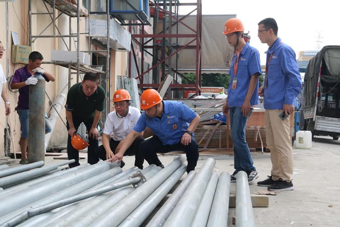 福州市纪委监委纪检监察干部在施工现场了解国企民生保障项目相关整改情况。