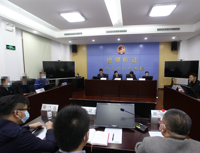 青岛市检察院刑事检察与公益诉讼两个部门就刘某等人非法捕捞水产品案举行联合听证会。