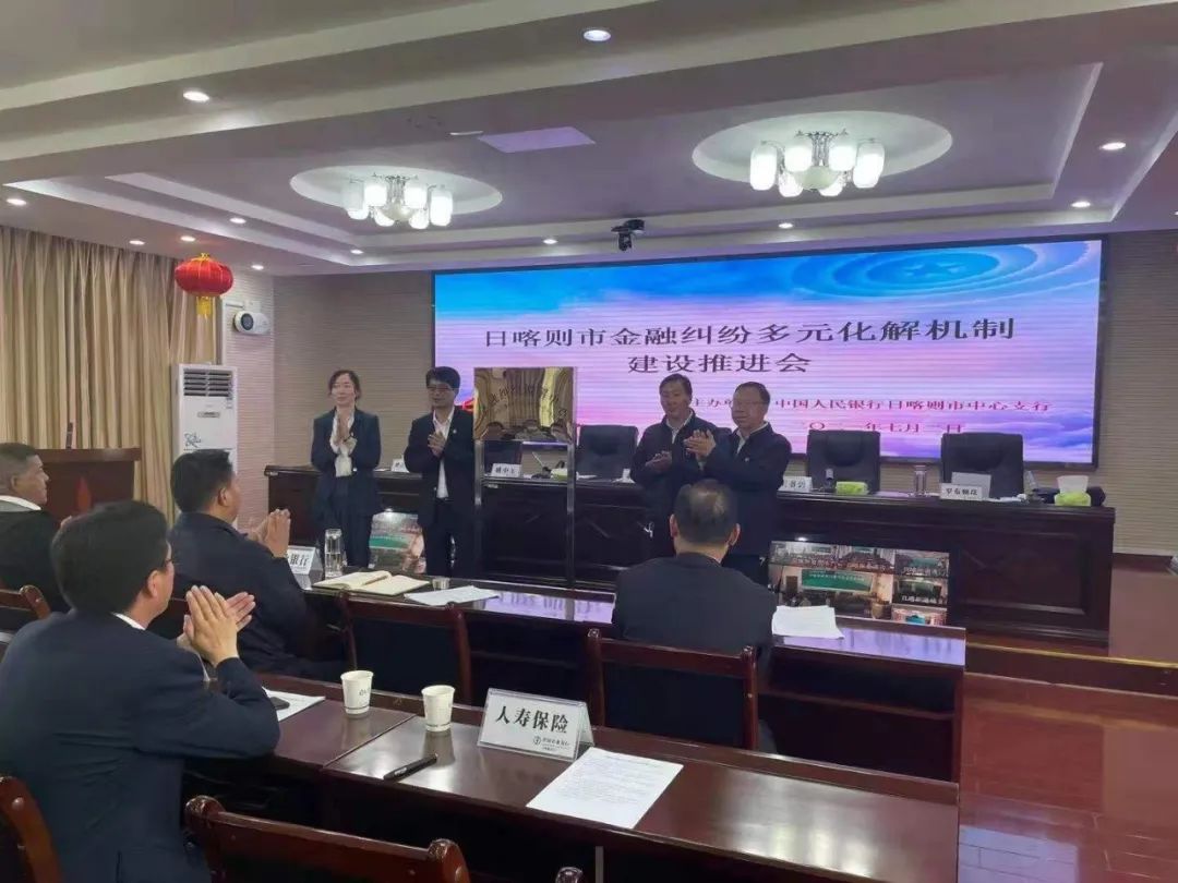 为进一步巩固第一批政法队伍教育整顿成果,加快推进金融诉调对接一体化平台建设,畅通金融纠纷解决渠道,切实维护金融消费双方当事人合法权益,保障金融市场健康有序发展,全力构建和谐稳定的社会环境,日喀则市司法局始终坚持把党史学习教育、政法队伍教育整顿和“三更”专题教育贯穿业务工作的全过程,以“为人民办实事”为宗旨,主动担当、迎难而上,积极与市中级人民法院、人行西藏日喀则市支行沟通协调,联合出台了《关于全面推进日喀则市金融纠纷多元化解机制建设的实施意见》,《意见》进一步明确了适用案件范围、职责分工,并从委托调解、诉前调解、诉中调解、调解协议司法确认、申请执行协议等方面对调解流程作了规定,确保金融纠纷调解中心各项工作有力有序开展,并于2021年7月8日在中国人民银行日喀则市中心支行举行了“金融纠纷调解中心”揭牌仪式。同时,为进一步推动工作,强化各相关单位职责落实,近日相关责任单位召开“金融纠纷调解中心”工作推进会议,进一步研究落实金融纠纷调解中心各项工作,