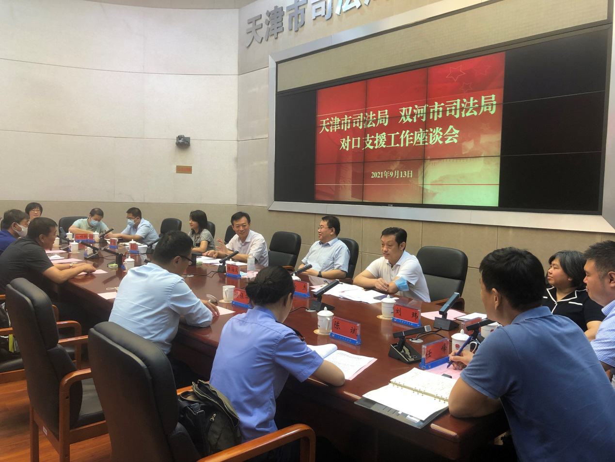 双河市司法局主要负责同志对天津市司法局多年来给予的援助致以谢意,表示将积极学习借鉴天津的先进经验做法,进一步加强沟通联系,推动对口合作迈上新台阶。局有关处室负责同志及部分干警代表参加会议。