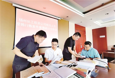 江苏省高邮市纪委监委将工程建设招投标、生态环保、安全生产等领域作为查处重点,深入推进受贿行贿一起查。图为近日,该市纪委监委第七审查调查室就扬州化工投资公司相关人员受贿行贿案件召开案情分析会。谭倩 摄