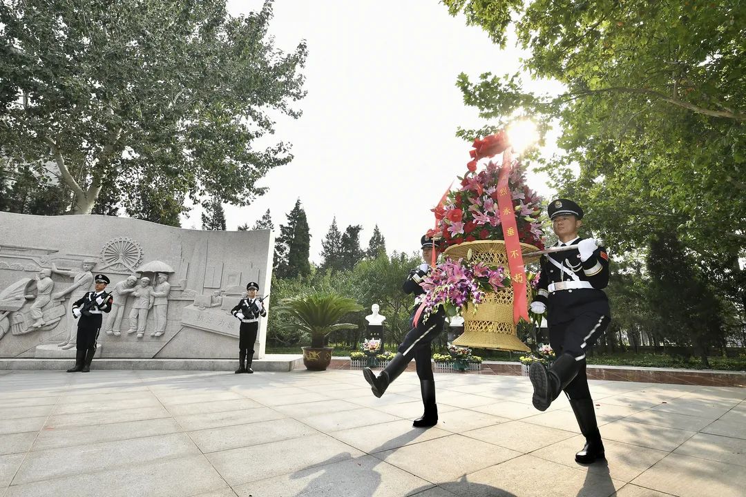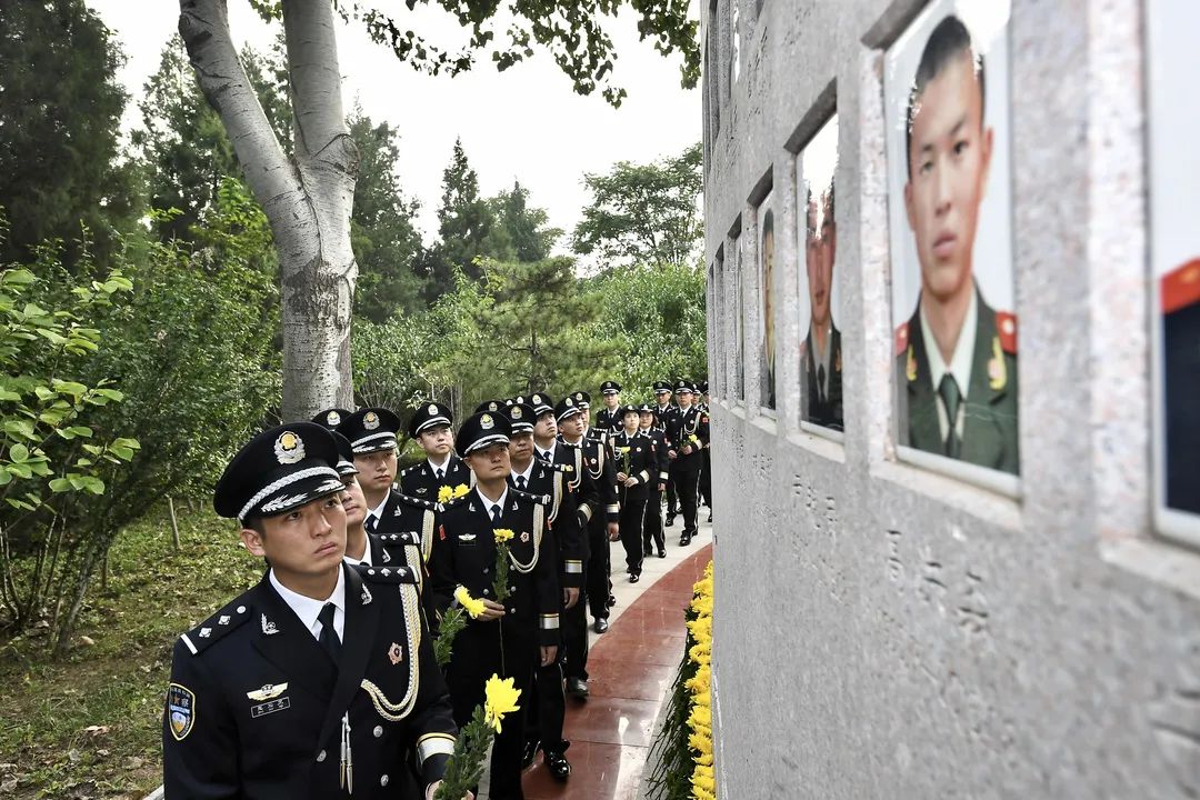 以生命践行使命,用热血铸就警魂。9月30日上午,在第8个国家烈士纪念日到来之际,天津市公安局在市烈士陵园公安英烈墙前举行向公安英烈敬献花篮仪式。副市长、市公安局党委书记、局长董家禄和170名市公安局直属单位青年民警代表向公安英烈敬献鲜花。