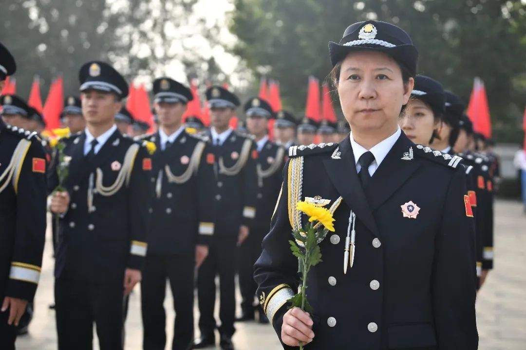 仪式上,雄壮的《义勇军进行曲》响起,全体民警整齐列队、警容严整、神情肃穆,高唱中华人民共和国国歌。伴随着《献花曲》响起,4名礼兵庄重地向公安英烈敬献花篮,寄托对公安英烈的无限哀思。“我志愿成为中华人民共和国人民警察,献身于崇高的人民公安事业,坚决做到‘对党忠诚、服务人民、执法公正、纪律严明’……”在青年民警代表的领读下,全体民警重温入警誓词。最后,全体民警手捧鲜花缓步走到公安英烈墙前,向公安英烈敬献鲜花,共同缅怀峥嵘岁月中为公安事业英勇牺牲的公安英烈。