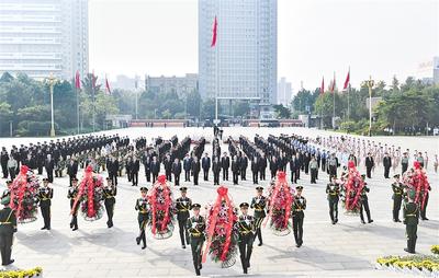 9月30日上午,烈士纪念日向华北军区烈士敬献花篮仪式在石家庄市华北军区烈士陵园举行。这是敬献花篮仪式现场。河北日报记者 赵 威摄