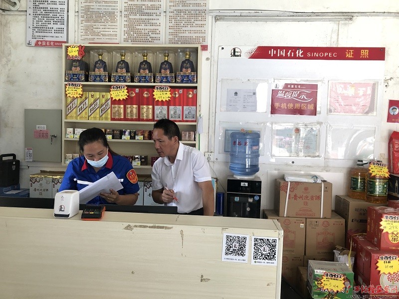 图为该县纪委监委干部在中国石化加油站内检查公务用车加油记录。(崔鼎/摄)