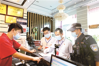 云南省宜良县纪委监委紧盯中秋、国庆重要节点,针对违规公款吃喝、违规接受管理服务对象宴请等行为开展专项检查,严防“四风”成为腐败滋长的温床。图为近日,该县纪委监委联合相关部门到辖区内酒店了解情况。易盛芳 摄