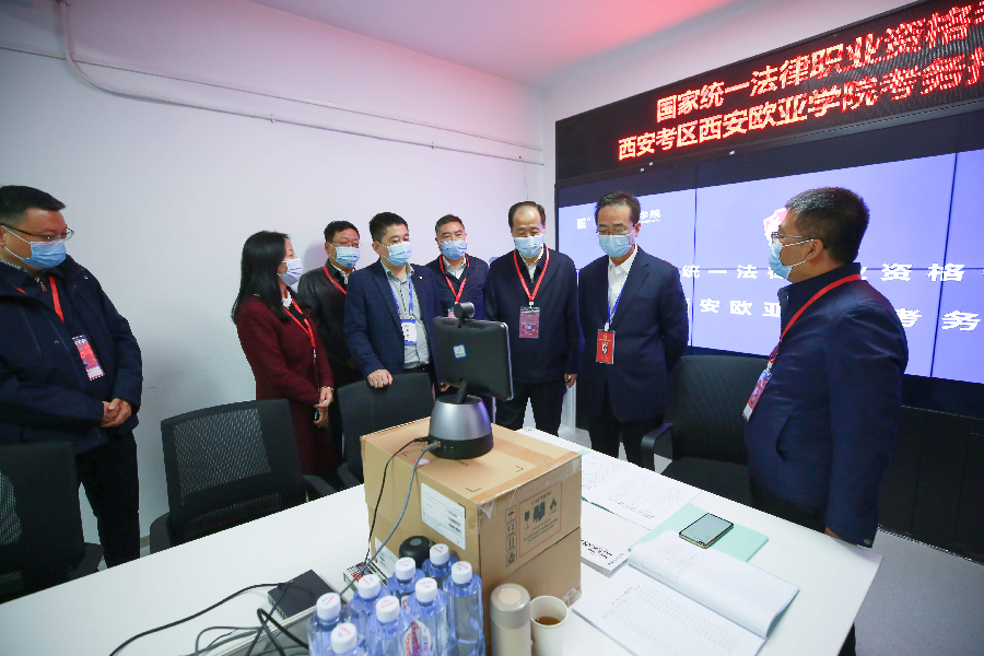 10月16日上午,司法部巡考组一行到陕西考区西安欧亚学院考点检查指导客观题考试工作。陕西省司法厅党组书记、厅长王永明陪同检查。