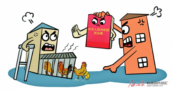 夏某经村委会批准,在邻居贾某宅院西北方向先后建了19间鸡舍。鸡舍与贾某二层的新房距离约为七八米。每天,贾某打开窗户便能看见露天堆放的鸡粪,贾某多次找夏某协商,要其将鸡舍搬走,无果后,贾某将夏某诉至法庭。