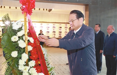 10月21日,省委书记易炼红专程来到革命摇篮井冈山,怀着崇敬的心情,向革命烈士敬献花篮。记者 海波摄
