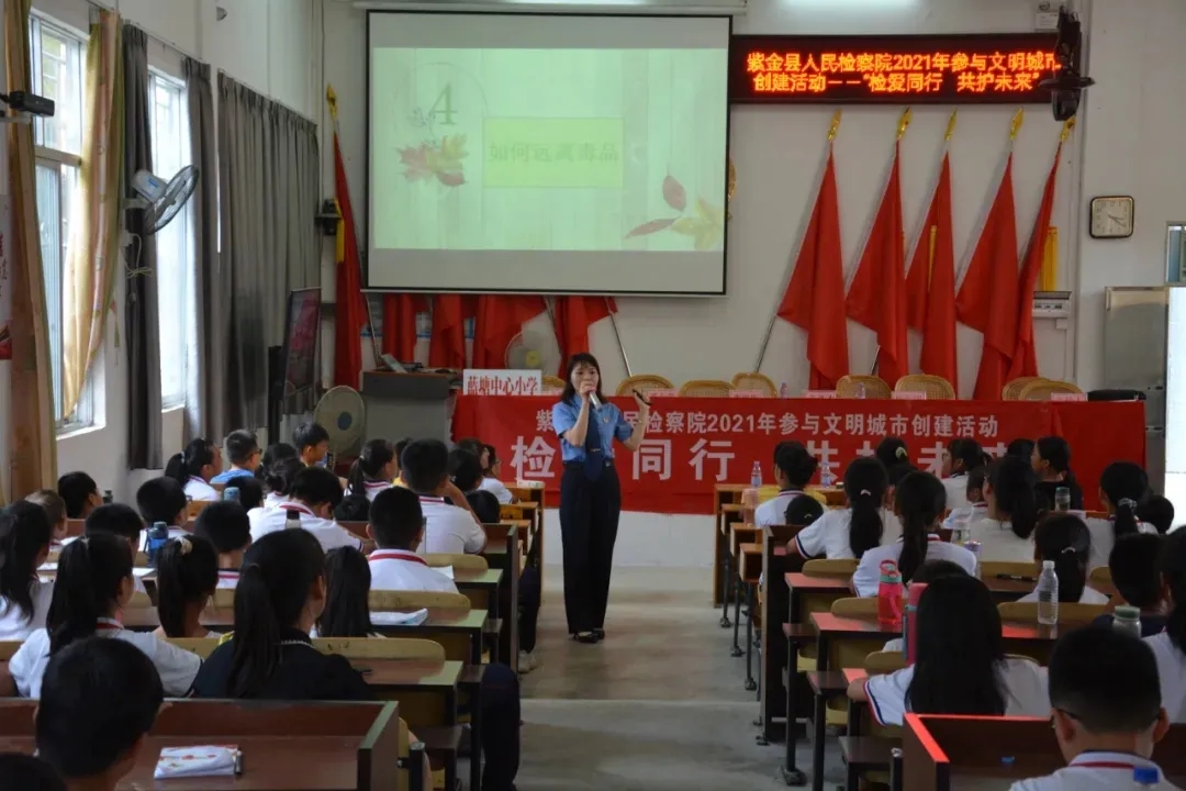 紫金县检察院以党建引领未成年人检察工作,用法治关怀幼苗的成长,倾力打造“紫检‘护苗’,守护成长”未成年人检察工作品牌。发挥好自身的检察职能与联动社会力量,拓展司法影响力,具体实施好未成年人的每一项检察建议、特殊制度、程序规范之中,“一号检察建议”有效落地,未成年人心理辅导、帮扶帮教、附条件不起诉有序推进,“一站式”救助机制也逐步走上正轨,全面为青少年的司法保护倾力打造坚固如金的司法防护罩。