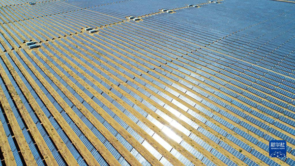 这是宁夏中卫市沙漠光伏产业园光伏电站(2018年9月7日,无人机照片)。新华社记者 王鹏 摄