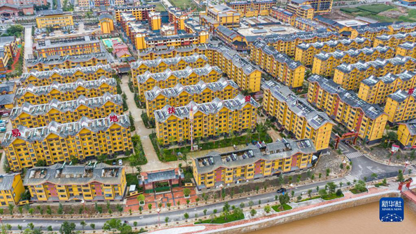 云南省丽江市宁蒗彝族自治县易地扶贫搬迁安置区幸福家园一景(8月25日摄,无人机照片)。新华社记者 胡超 摄