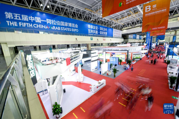 这是中国-阿拉伯国家博览会清洁能源与新型材料展区(8月22日摄)。新华社记者 冯开华 摄