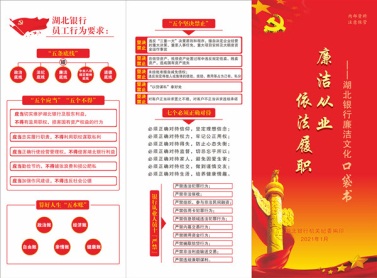 今年宣教月活动中,湖北银行坚持把廉洁教育贯穿业务经营、合规建设的全过程,深入开展廉洁文化“进支部、进岗位、进家庭”活动。以支部主题党日活动等形式集中学习《金融案鉴》、行内违规违纪问题通报;编印“廉洁从业、依法履职”清廉文化口袋书;修订员工违规行为处理办法,明确各个岗位的负面清单188条;开展“百名党支部书记讲廉政党课”、上好新入职员工“廉洁教育第一课”,进一步规范全行干部职工的从业行为,促进合规经营。