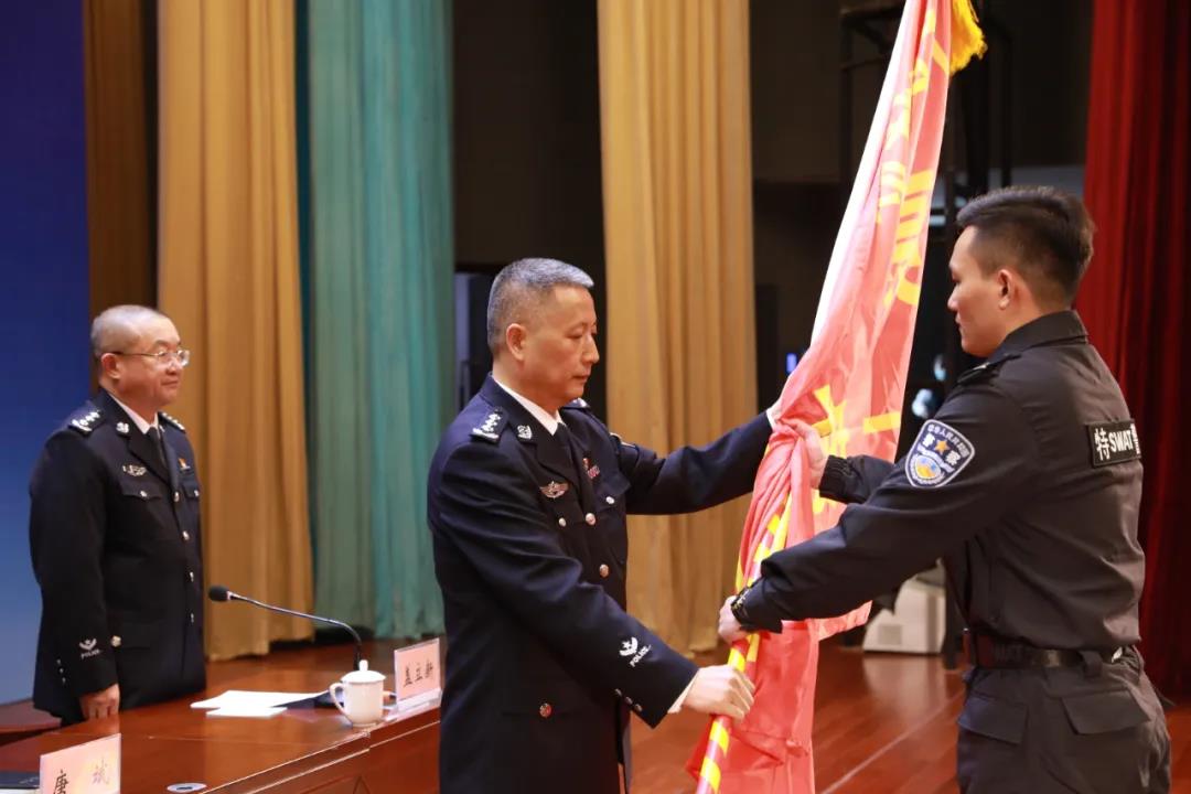 在出征仪式上,自治区疫情防控指挥部联防联控组组长、自治区公安厅党委副书记、常务副厅长唐斌向工作队授旗并宣布出征。唐斌要求,全体参战队员要密切配合受援单位开展工作,坚决服从工作安排,严守各项组织纪律和工作制度。把严明的纪律、饱满的精神、规范的行为、文明的语言体现在具体执勤中,把为民、亲民、便民、利民的各项举措落实到各岗位、各环节。坚持领导带头、一线作战,始终保持最实的工作作风、最严的战时纪律、最佳的精神状态,推动工作、完成任务,以实际行动展现八桂公安铁军的风采。