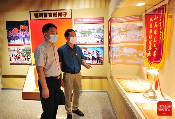 福建省厦门市湖里区纪委监委充分依托本土红色资源开展形式多样的主题党日活动,讲好红色廉政故事,引导纪检监察干部从红色文化中汲取奋进力量。图为区纪委监委纪检监察干部走进厦门何厝小学的英雄小八路纪念馆,重温少年英雄们“一颗红心永向党”的廉洁拥军故事。(福建省厦门市湖里区纪委监委 蓝雅婷 摄)