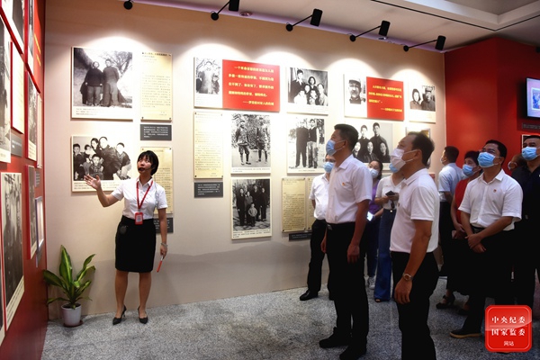 在党史学习教育中,海南省海口市美兰区纪委监委将红色文化教育融入廉政教育中,引导党员干部筑牢信仰之基,绷紧纪律之弦。图为该区纪委监委组织领导干部及家属参观《中国共产党人的家风》档案展,细品老一辈无产阶级革命家和优秀共产党人的家风故事,从中汲取清廉力量。(海南省海口市美兰区纪委监委供 陈尾娇 摄)
