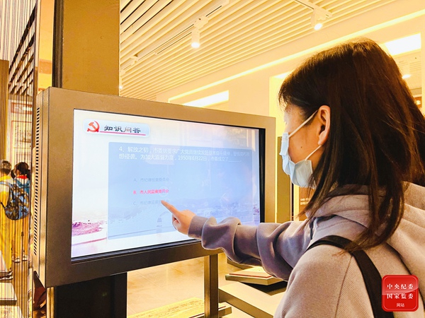 历史是最好的教科书。杭州市上城区湖滨街道纪检监察干部走进中国共产党杭州历史馆,听取学习共产党员严守八项纪律等清廉故事,并在现场进行廉政知识答题,巩固学习内容。(浙江省杭州市上城区纪委监委供 楼琳娟 摄)