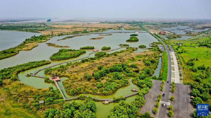 这是5月13日拍摄的山东黄河三角洲国家级自然保护区景色(无人机照片)。新华社记者 郭绪雷 摄