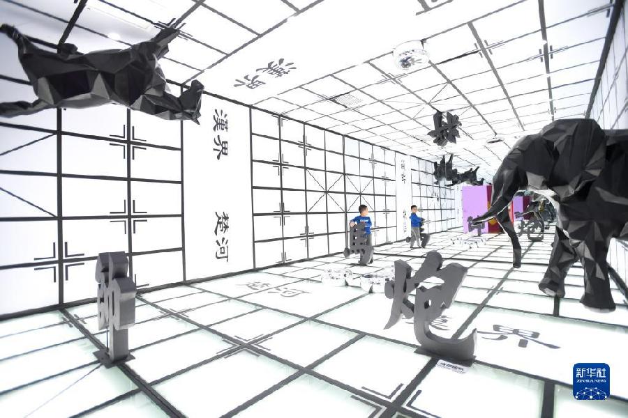 2019年9月21日,小朋友在湖南省长沙市“字在其中”汉字国潮艺术展上参观。新华社记者 陈泽国 摄