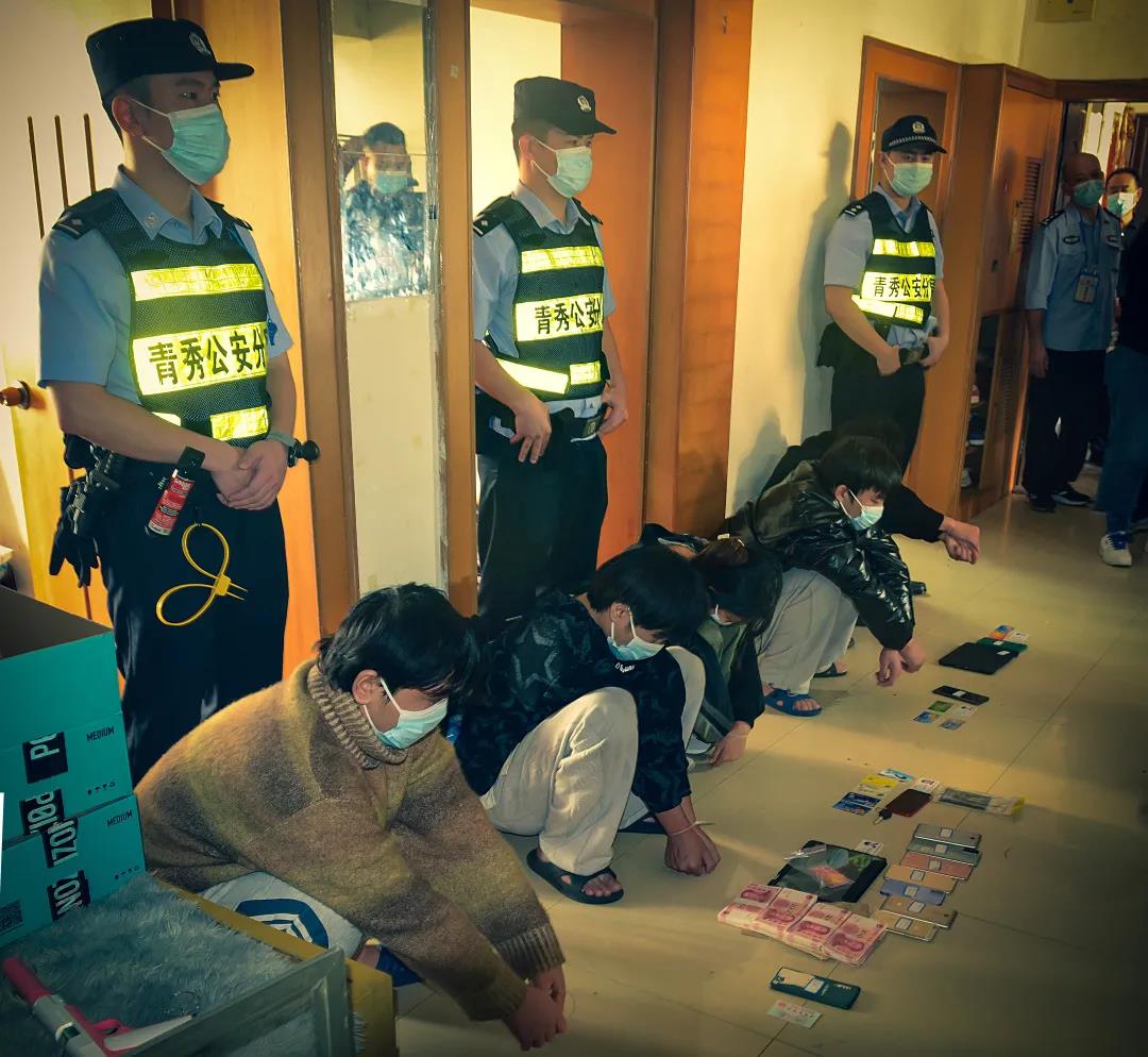 11月4日,南宁市公安局青秀分局刑侦三大队根据大数据研判,发现一条重要线索,在辖区星湖路一居民小区内隐藏着一个地下洗钱团伙。经侦查确定目标后,青秀公安分局刑警于11月5日凌晨对该小区目标出租房实施收网,将洗钱团伙5名成员全部抓获,并缴获电脑、手机、银行卡等作案工具和现金4万多元。