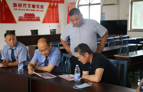 刘海峰(左二)到诸城市舜王街道程戈庄一村城乡联建点开展党建活动