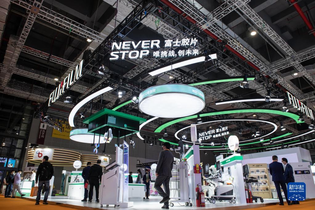 这是11月8日拍摄的第四届中国国际进口博览会技术装备展区的日本富士胶片集团展台。新华社记者 孟涛 摄