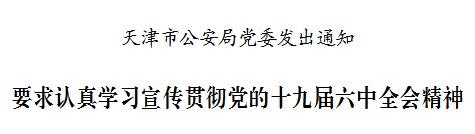 11月24日,天津市公安局党委发出通知,要求全市各级公安机关和广大党员民警要把认真学习宣传贯彻党的十九届六中全会精神作为当前和今后一个时期的重大政治任务,迅速掀起学习宣传贯彻全会精神的热潮。