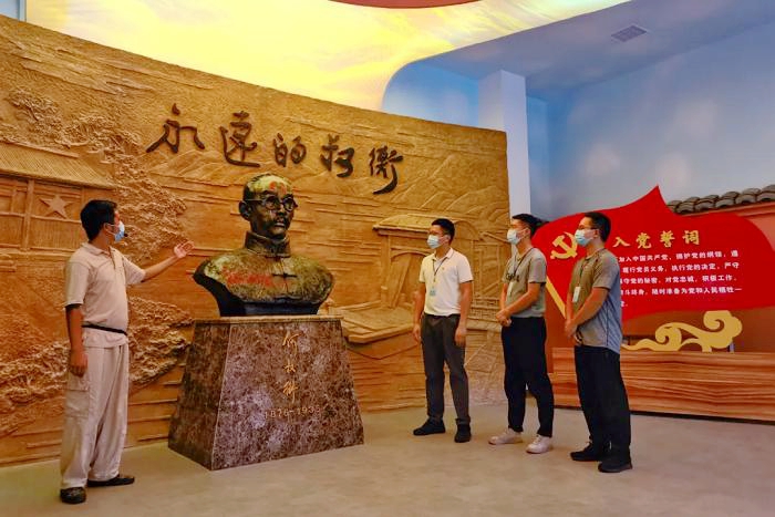 长汀县纪检监察干部在何叔衡纪念馆聆听讲解员介绍何叔衡为党的事业奋斗终生的事迹