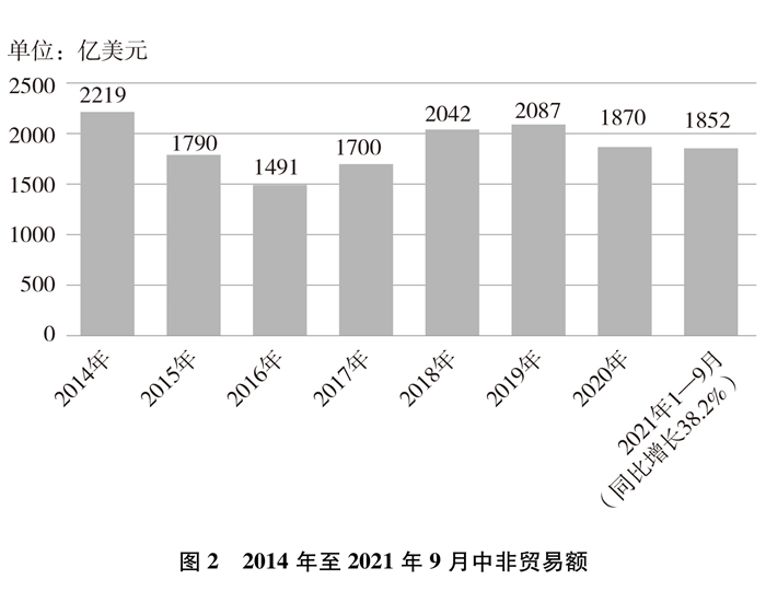 ——加速贸易发展。中国自2009年起连续12年稳居非洲第一大贸易伙伴国地位,中非贸易额占非洲整体外贸总额比重连年上升,2020年超过21%。中非贸易结构持续优化,中国对非出口技术含量显著提高,机电产品、高新技术产品对非出口额占比超过50%。中国主动扩大自非洲非资源类产品进口,对非洲33个最不发达国家97%税目输华产品提供零关税待遇,帮助更多非洲农业、制造业产品进入中国市场。据统计,2017年以来中国从非洲服务进口年均增长20%,每年为非洲创造近40万个就业岗位。近年来,中国自非农产品进口持续增长,已成为非洲第二大农产品出口目的国。中非电子商务等贸易新业态蓬勃发展,“丝路电商”合作不断推进,中国已与卢旺达建立电子商务合作机制,中国企业积极投资海外仓建设,非洲优质特色产品通过电子商务直接对接中国市场。中国-毛里求斯自贸协定于2021年1月1日正式生效,成为中非间首个自贸协定,为中非经贸合作注入新动力。