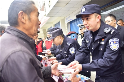 “各位父老乡亲,我们是石家派出所的民警,耽搁大家几分钟时间,我把一个专门诈骗老年人的案子给大家详细说一下,大家都来听一听,以免上当受骗了。”11月24日,黔江区石家镇赶集的日子,民警拿着麦克风大声向赶集群众“吆喝”着,吸引了不少群众驻足。