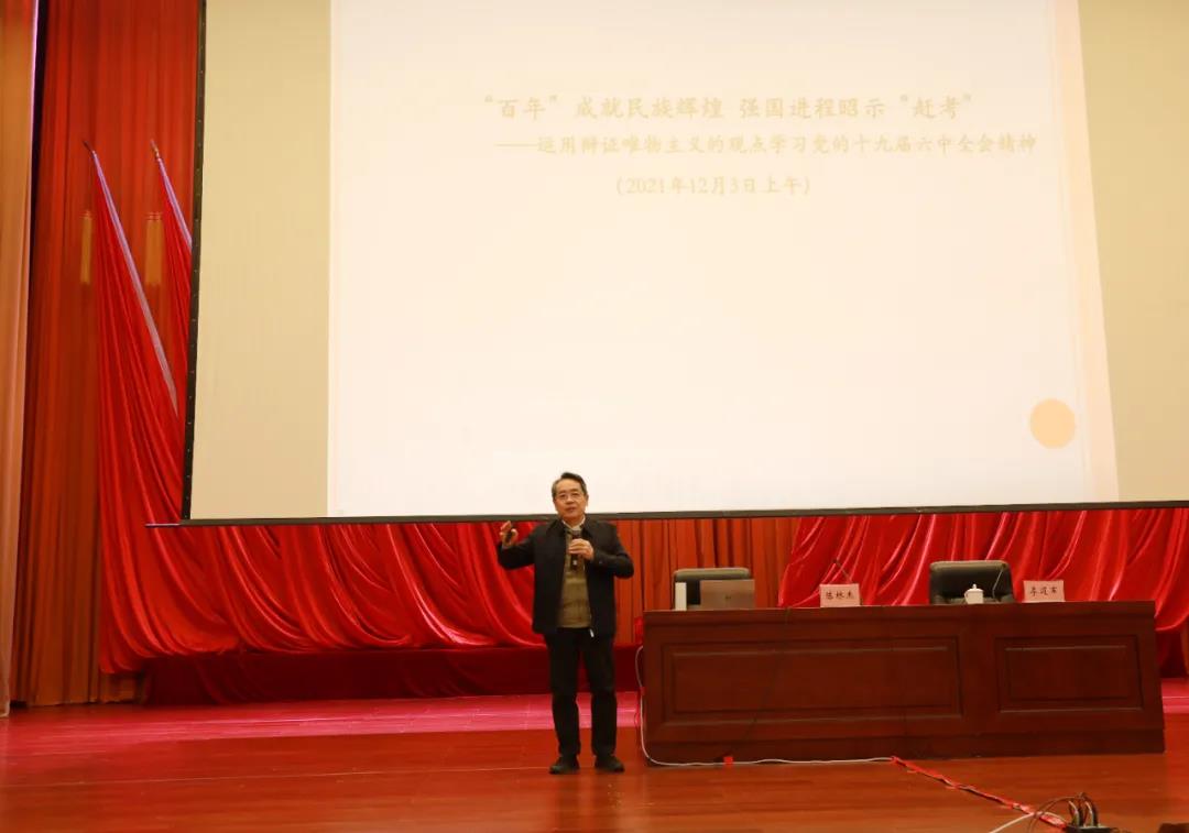 12月3日,自治区公安厅召开全区公安机关学习宣传贯彻党的十九届六中全会精神专题辅导视频会。广西行政学院原副院长、巡视员陈林杰以“‘百年’成就民族辉煌 强国进程昭示‘赶考’——运用辩证唯物主义的观点学习党的十九届六中全会精神”为题开展专题辅导。