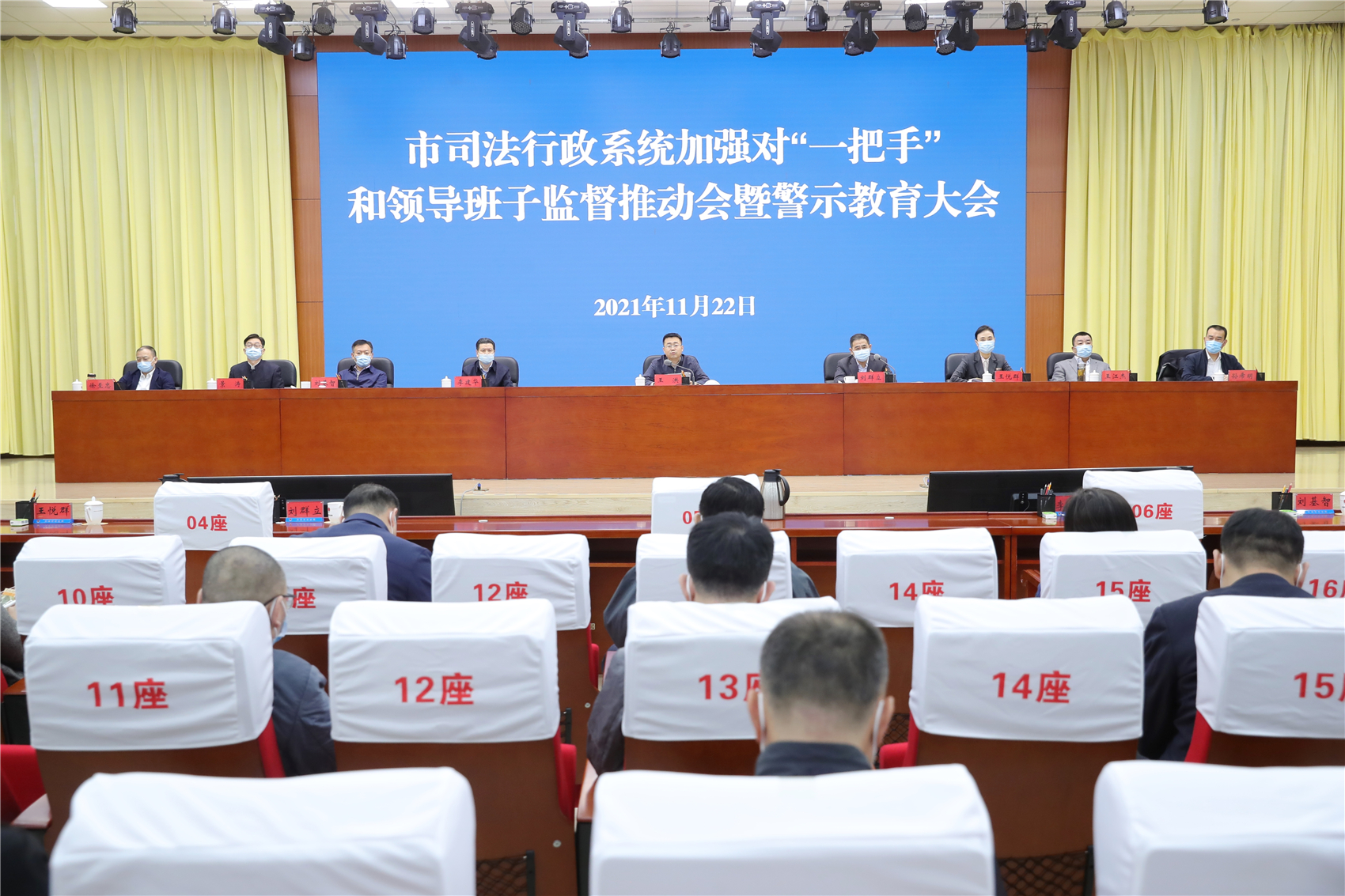 11月22日,市司法局召开加强对“一把手”和领导班子监督推动会暨警示教育大会,全面落实党中央和市委决策部署,以案为警、以案为鉴、以案为戒,研究部署加强对“一把手”和领导班子监督工作,进一步营造正气充盈、政治清明的良好政治生态。市司法局党委副书记、副局长,市监狱局党委书记、局长王洪讲话,市司法局党委委员、驻局纪检监察组组长刘群立主持会议,市司法局领导班子成员出席。