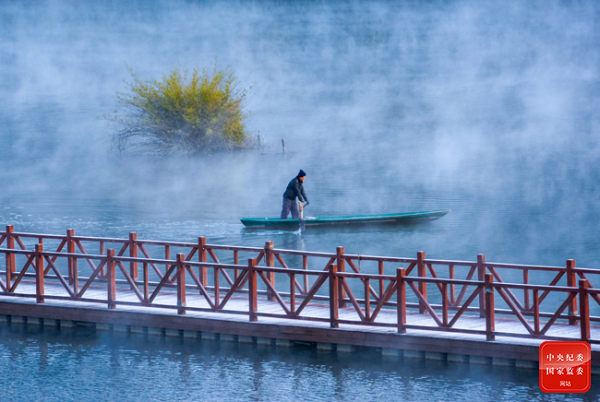 冉冉晨雾重,晖晖冬日微。(江西省上犹县纪委监委供 杨文国 摄)