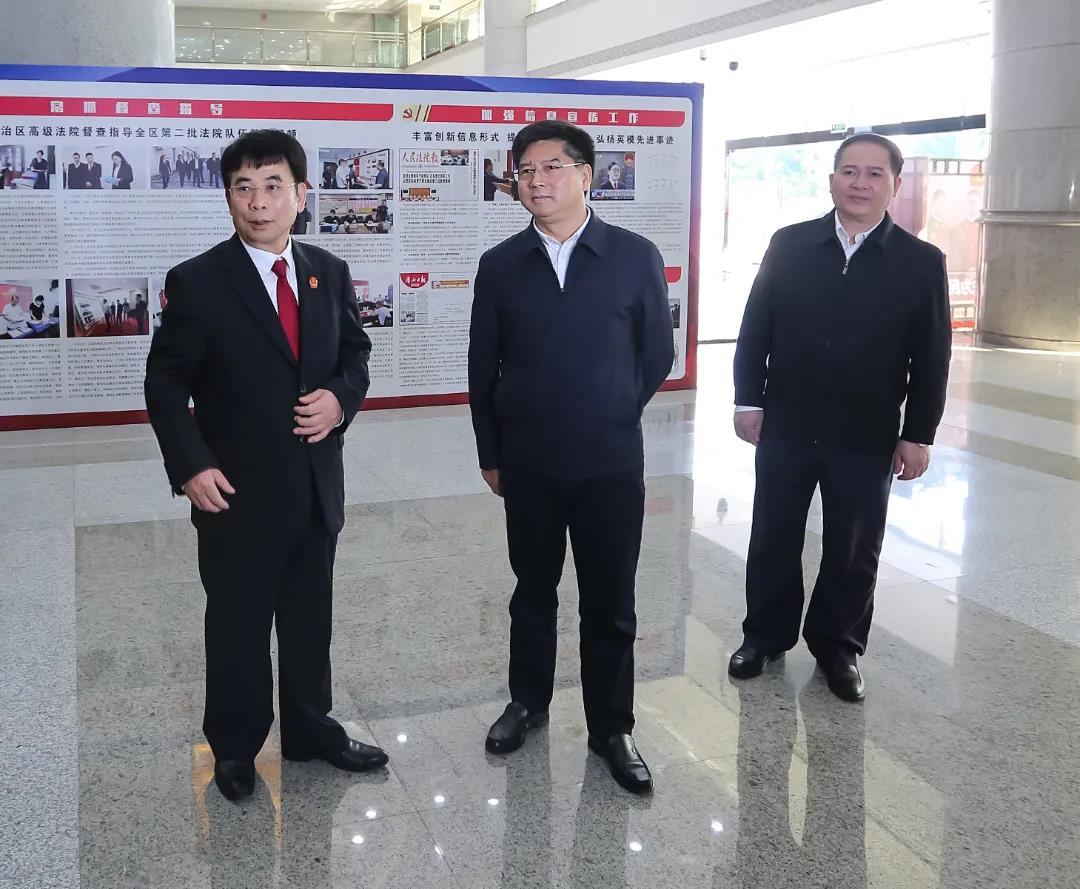 自治区副主席、公安厅厅长周成方,自治区高级人民法院院长黄海龙,自治区人民检察院检察长茅仲华分别参加所在单位的调研活动。自治区党委政法委常务副书记全桂寿陪同调研。
