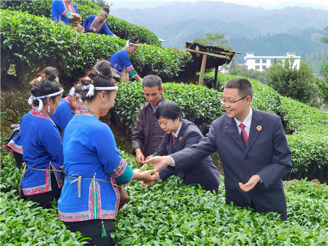 检察官在广西壮族自治区三江县洋西乡高路村茶园开展公益诉讼检察工作