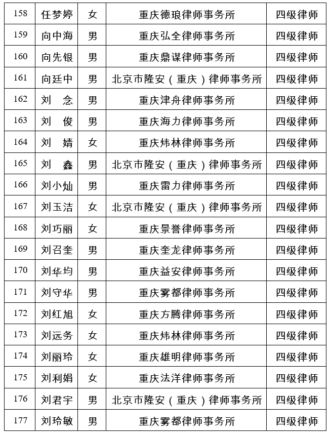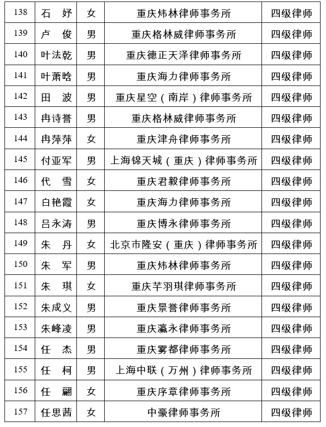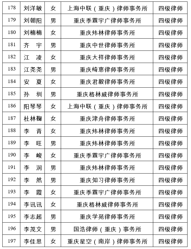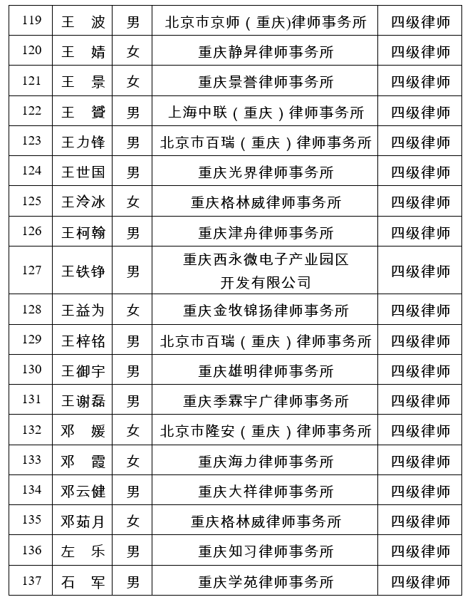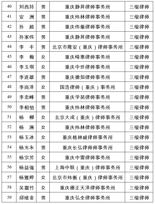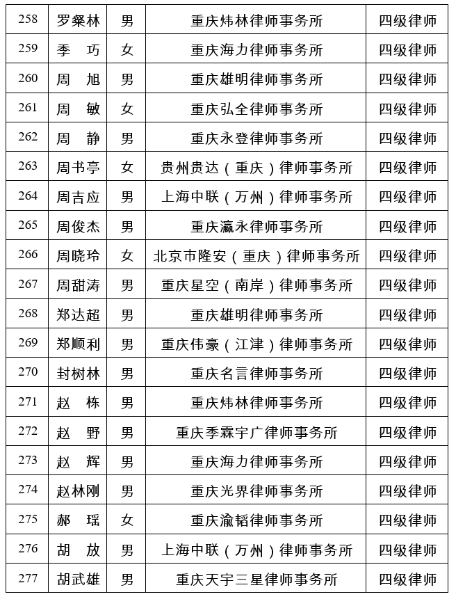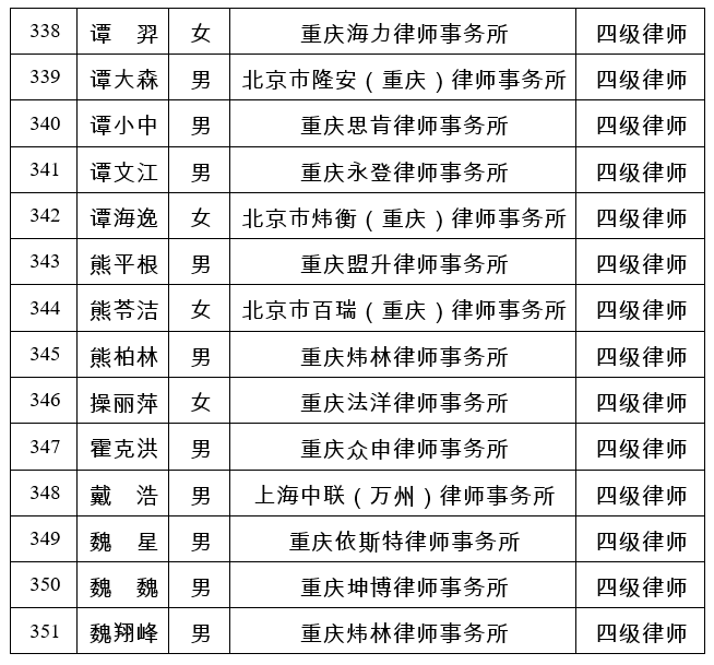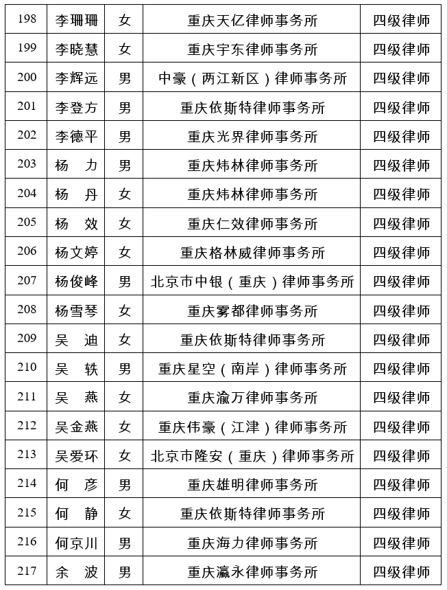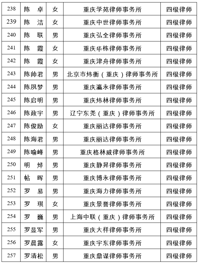 现将重庆市律师专业高级职称评审委员会2021年12月28日评审通过人员名单予以公示(附后)。