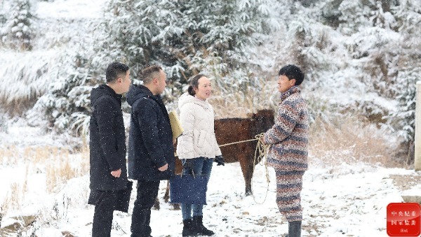 2021年,江西省萍乡市各级纪检监察机关继续将群众安危和幸福放在心头,紧盯群众身边腐败和不正之风,严肃查处贪污侵占、虚报冒领、截留挪用、优亲厚友等侵害群众利益问题。图为2021年1月7日,莲花县纪检监察干部冒着风雪深入六市乡太沙村了解信访问题。(江西省莲花县纪委监委供 李小斌 摄)
